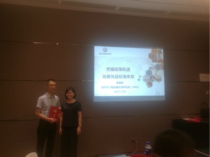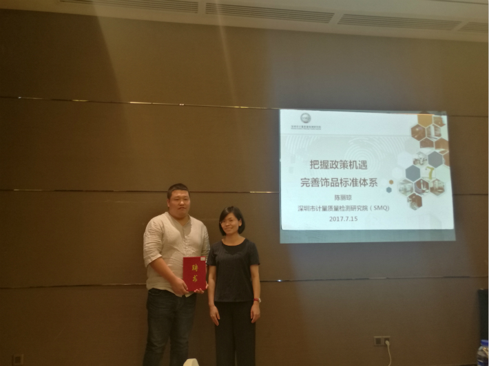 接下來就是 我們的主任委員 陳麗瓊博士做專委報(bào)告~《把握政策機(jī)遇-完善飾品標(biāo)準(zhǔn)體系》~~~可惜了 這里缺張圖片~~